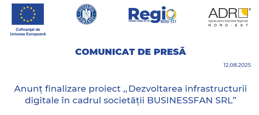 Anunț finalizare proiect ,, Dezvoltarea infrastructurii digitale în cadrul societății BUSINESSFAN SRL”